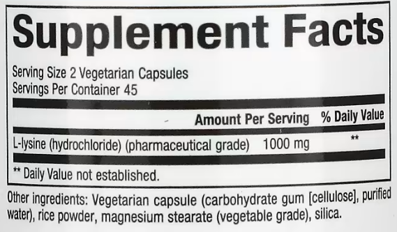 | L-лизин (гидрохлорид) (фармацевтическая чистота) | 1000 мг | ** |