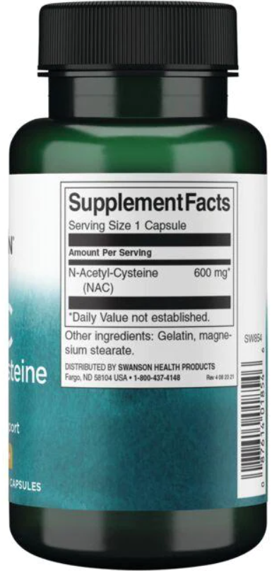 Swanson NAC N-Acetyl Cysteine (N-ацетилцистеин) 600 мг 100 капсул