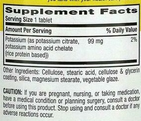 | Калий (в виде цитрата калия, хелата аминокислоты калия {на основе рисового белка}) | 99 мг | 2% |