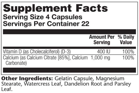 | Кальций - (в виде цитрата кальция, гидроксида кальция) | 1000 мг | 100% |