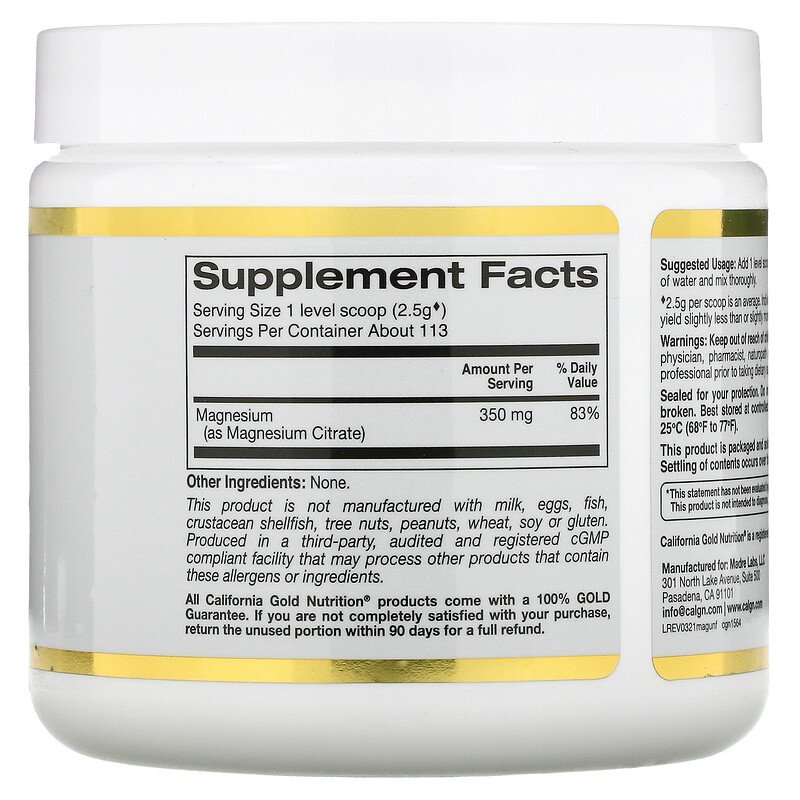 California Gold Nutrition Magnesium Powder Beverage (магний в растворимом порошке) с нейтральным вкусом 283 г