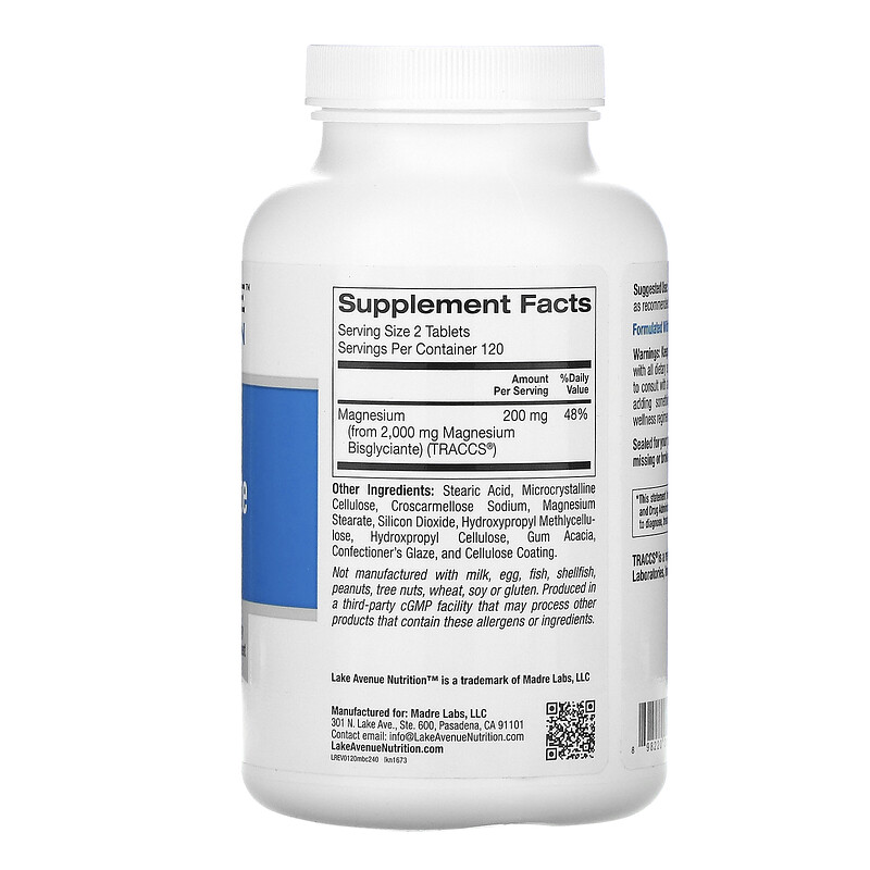 Lake Avenue Nutrition хелатный бисглицинат магния 200 мг 240 таблеток