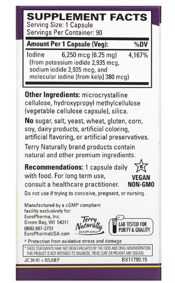 Terry Naturally Tri-Iodine (Трийод) 6.25 мг 90 капсул