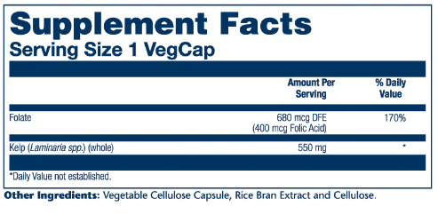 Крупная водоросль, растущая в холодной прибрежной океанской воде, считается суперпродуктом, помогающим поддерживать щитовидную железу. Вот почему Solaray предлагает нашу мощную добавку Kelp 550 мг. Обладая высокой питательной ценностью, водоросли особенно известны своей концентрацией встречающегося в природе йода. Надлежащий уровень йода необходим для хорошего здоровья, потому что основная функция вашей щитовидной железы состоит в том, чтобы принимать йод и преобразовывать его в гормоны щитовидной железы, которые играют важную роль в обмене веществ, росте и развитии, а также регулируют многие функции организма. Solaray Kelp сформулирован так, чтобы обеспечить 550 мг водорослей и 400 мкг фолиевой кислоты для поддержания здоровой функции щитовидной железы.