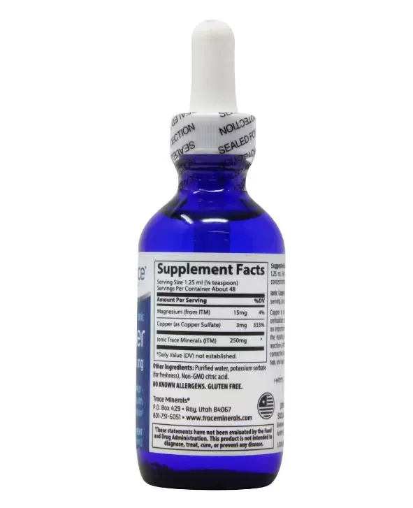 Ионная медь обеспечивает 333% дневной нормы меди на порцию, а также более 72 естественных ионных микроэлементов. Медь - важный минерал, который помогает активировать антиоксидантный фермент супероксиддисмутазу. Медь также играет важную роль во многих физиологических процессах, включая здоровое образование красных кровяных телец, правильные ферментативные реакции, эффективное использование железа и поддержание здоровья соединительной ткани, волос и глаз.