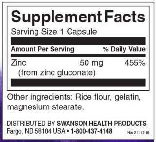 Swanson Zinc Gluconate (Цинк Глюконат) 50 мг 250 капсул