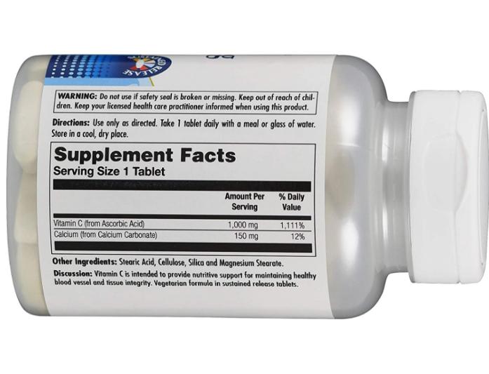 Этот мощный антиоксидант обеспечивает 1000 мг витамина С и 150 мг кальция на таблетку. Буферизованную форму предпочитают люди с чувствительностью к кислотам.