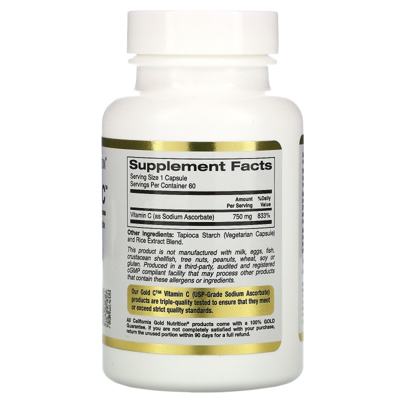 Buffered Gold-C от California Gold Nutrition – это улучшенная форма витамина С, которая обладает наивысшей биодоступностью. Также аскорбат натрия, в отличие от аскорбиновой кислоты, не вызывает раздражения желудка у людей с чувствительным ЖКТ. Витамин С играет важную роль для большинства биохимических реакций, систем и тканей организма. Вещество необходимо для поддержания функций иммунитета, выработки целого ряда важнейших ферментов, энзимов и других соединений.