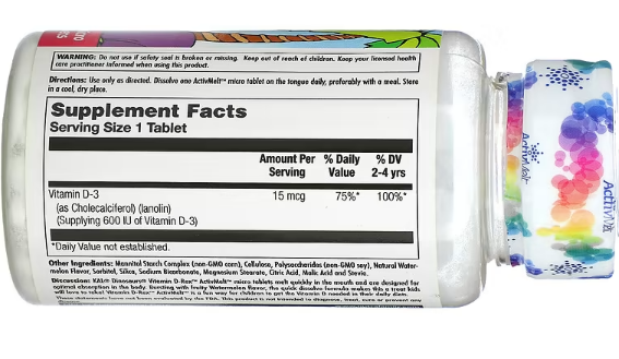 Микротаблетки KAL® Dinosaurs® Vitamin D-Rex ™ ActivMelt™ быстро тают во рту и предназначены для оптимального усвоения организмом. Быстро растворяющаяся формула с фруктовым ароматом арбуза делает это лакомство для детей любимым! Витамин D -Rex™ ActivMelt™ — это интересный способ для детей получать витамин D, необходимый в их ежедневном рационе.