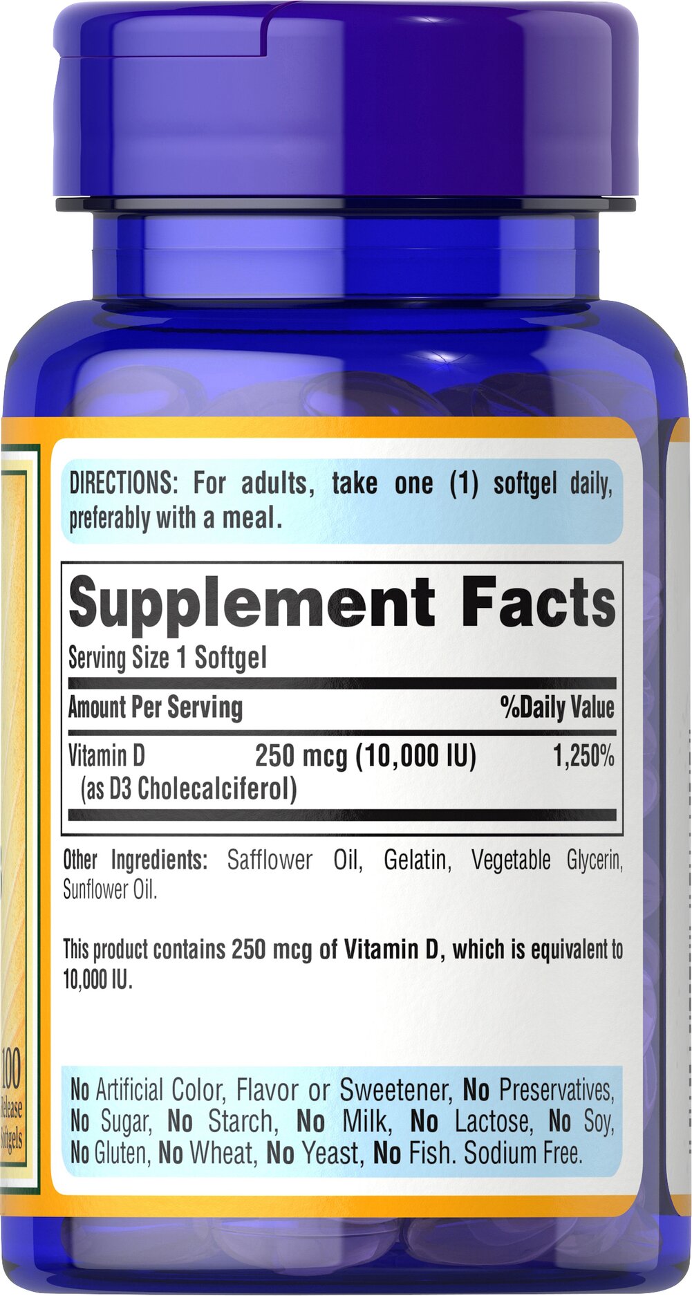 Puritan's Pride Vitamin D3 (Витамин D3) 250 мкг 10000 МЕ 100 гелевых капсул