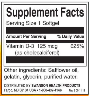 • Swanson Premium Высокоэффективный витамин D-3 5000 МЕ.