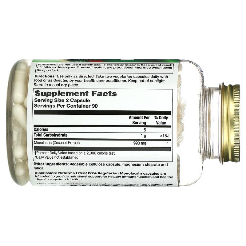 Nature's Life Monolaurin (монолаурин) 180 вегетарианских капсул
