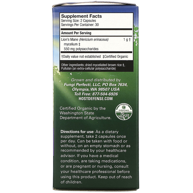 Fungi Perfecti Host Defense Lion's Mane Memory & Nerve Support (Ежовик гребенчатый поддержка памяти и нервной системы) 60 капсул